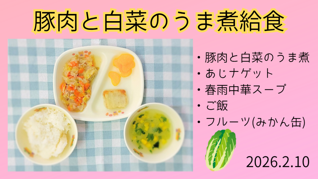 本日の給食は“豚肉は白菜のうま煮給食”でした。