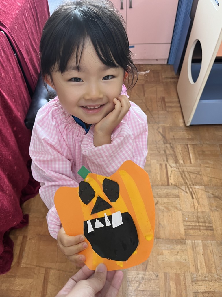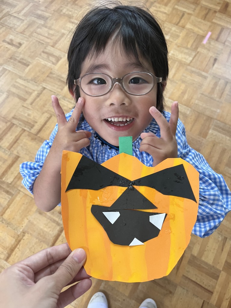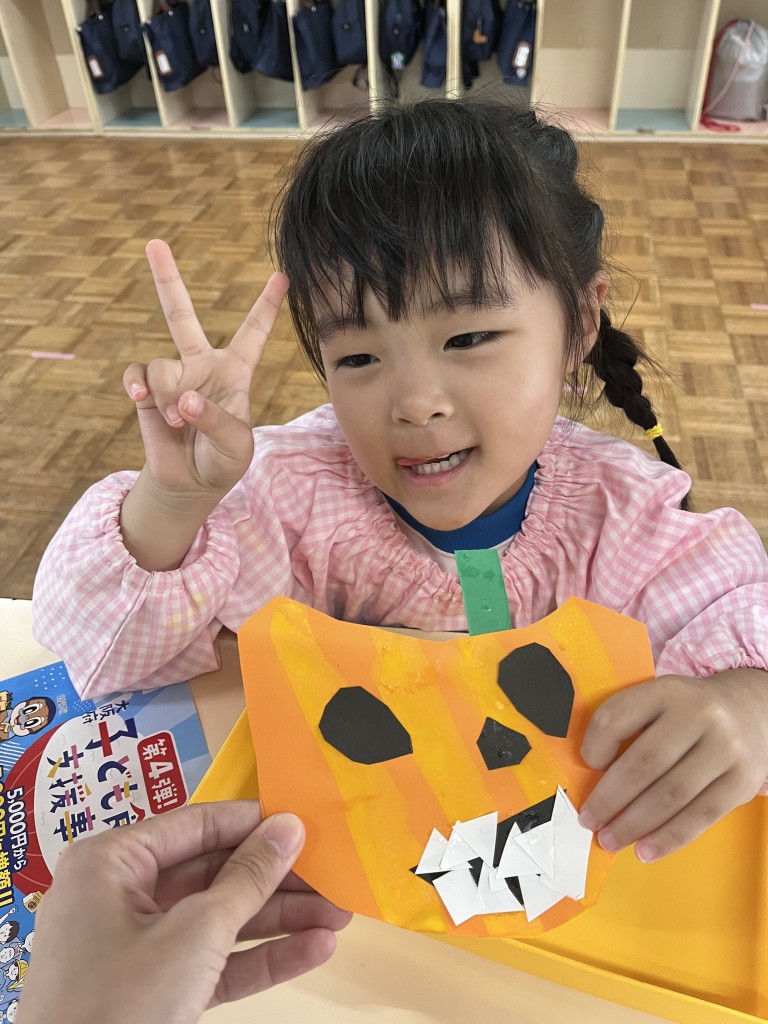 あかぐみさんは、かぼちゃとおばけを製作しました✂️